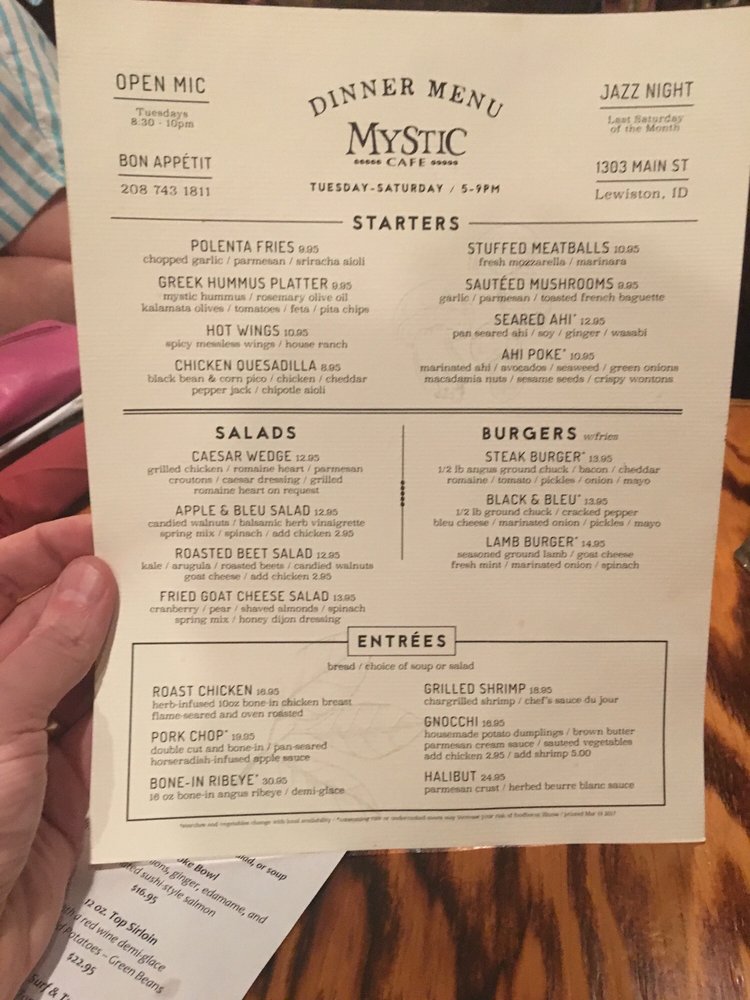 Mystic Cafe Menu